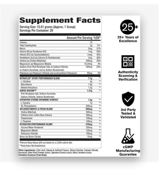 Nitra Flex Extreme Sport is a high-performance pre-workout supplement designed for Champions have one goal — to win. You deserve a pre-workout that’s both safe for athletes and as relentless as your drive. Nitra Flex Extreme SPORT, tested for banned substances to ensure athlete confidence, delivers peak performance with an advanced formula built for everyone from grassroots competitors to elite professionals. Packed with cutting-edge ingredients, it boosts your energy, enhances your strength, and keeps you hydrated through even the most intense training sessions. Feel the explosive power and unstoppable endurance that only Nitra Flex SPORT can offer. Don’t just play the game — dominate it.